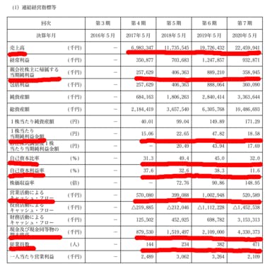 お疲れ様です( ^ ^ )。では、さっそく推移から確認しましょう。推移で、確認すべき点はこちらです。・売上高・純利益・EPS(1株当たり純利益)・自己資本比率・自己資本利益率(ROE)・営業CF・現金・従業員基本右肩上がりで、その伸び率をチェックします。10%以上が良いですね。ROEであれば2...
