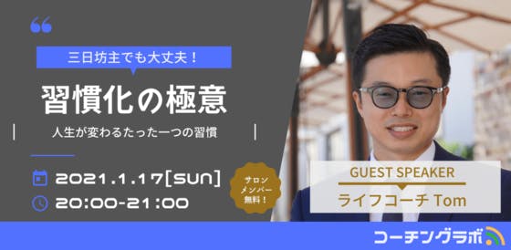 習慣力とは、習慣によって自分を自分の望む方向性へ変えていくことができる力のこと。人間は、習慣の生き物と言われています。コロナ禍で自分と向き合う時間が相対的に増えたいまだからこそ自分の人生の舵取りをし、本当に自分がしたい道に進む最大のチャンスだと捉えられるのではないでしょうか。1/17(日)のゲ...
