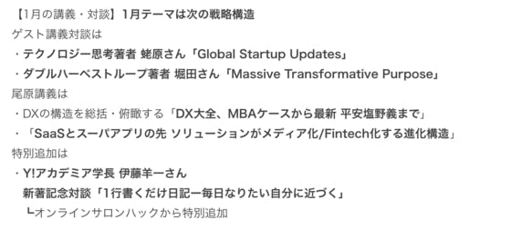 【1月は】次の戦略構造特集: 蛯原さんGlobal Updates, 堀田さん Massive Transformative Purpose、講義はDX総括とSaaSの先の戦場