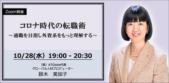 秋の転職シーズン真っただ中、次の転職・就職で適職につけるよう、外資系と日本企業の違いや企業との相性の見極め方を学びましょう。その場でキャリアのお悩み相談もできます。■開催概要開催日時:2020年10月28日(水) 19時00分~20時30分場 所:オンライン会議ツール「Zoom」にて参加費:一...