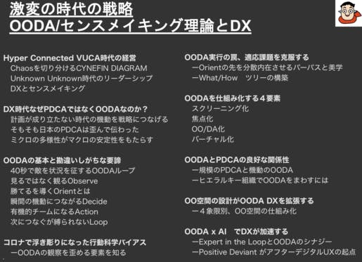 明日21時から DX/起業オンライン講座 元Google/アフターデジタル尾原のITビジネスの原理実践編は◇「激変の時代の戦略:OODA/センスメイキング理論とDX」コロナから半年、VUCAの時代といわれ、激変を前提とする社会に我々は突入しましたそんな時代に必須な理論 OODAとセンスメイキン...