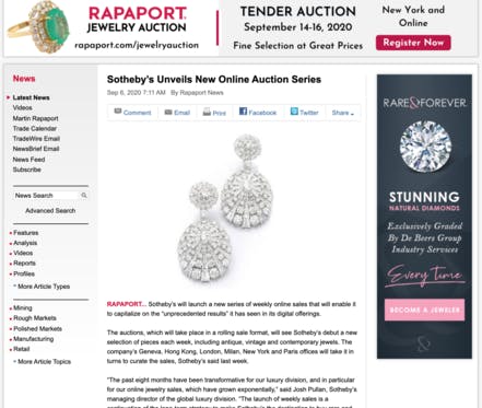 サザビーズとは、現在も操業する世界最古の国際競売会社です。インターネット上でオークションを開催した世界初の美術品オークションカンパニーです。 ラパポートニュースによると、サザビーズは今までの前例のない新しい週次オンライン販売のシリーズを開始すると発表しました。どんなオンライン販売かというと、...