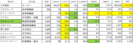 電気機器⑥です。日本電産:PERが高く、ROEがやや高く、FCFがマイナスTBグループ:可もなく不可もなくですテクノ・セブン:PERがやや高く、ROE、EPS、営業CFとFCFがマイナスアイホン:可もなく不可もなくですOSGコーポ:PERとROEがやや高い日本トリム:PERがやや高く、FCFが...