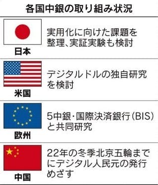 「デジタル通貨 米欧と歩調」政府・日銀が中央銀行の発行するデジタル通貨(CBDC)の検討に本腰を入れ始めた。デジタル決済を巡る技術革新が続くなか、中国が「デジタル人民元」の発行準備で先行している。日本は国内での電子決済ニーズにも対応し、米欧と連携して準備を急ぐ。デジタル通貨はお札などの現金通貨...