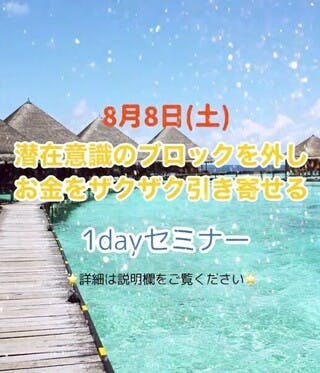 みなさま、こんにちは。運営事務局です。7/27の動画はご覧頂けましたでしょうか?早速ですが!『潜在意識のブロックを外しお金をザクザク引き寄せる1dayセミナー&懇親会』のご案内です。以前から、多くの皆さまより「セミナーを開催してください!」というご要望を頂いておりました。そこで、みなさんがどう...