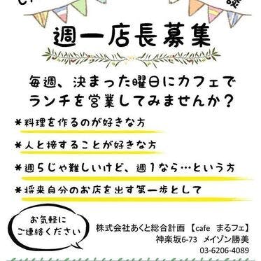 興味ある方いたら、周りにいればぜひぜひ!ランチだけじゃなく、夜の営業も興味ある方いれば!土曜日は営業してるのでお近くにおよりの際はこの画面と一緒に来てもらえればワンドリンクサービスいたします!新宿区神楽坂6丁目73番メイゾン勝美です!お店やりたい人も募集中です!週一や...