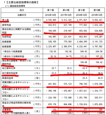 お疲れ様です( ^ ^ )。ギフトの有価証券報告書です。売上高、純利益は右肩上がりですが、EPSとROEが前年より落ちています。株主にとっては、残念な結果ですね。【沿革】 2009年設立、2018年マザーズ上場【事業の内容】「横浜家系ラーメンを世界への贈り物に!」を事業コン...