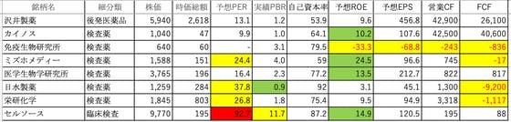 医薬品⑦です。沢井製薬:可もなく不可もなくですカイノス:ROEがやや高いです免疫生物研究所:ROE、EPS、営業CF、FCFがマイナスミズホメディー:PERがやや高く、ROEが高く、FCFがマイナス医学生物学研究所:ROEがやや高いです日水製薬:PERが高く、FCFがマイナス栄研化学:PERが...