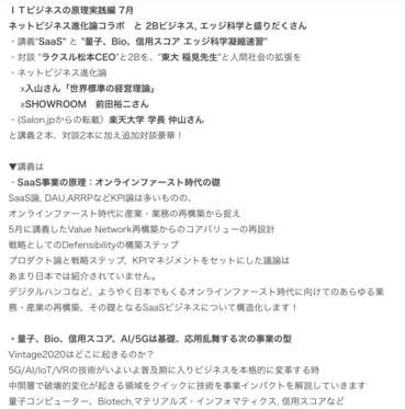 【公開】7月の講座はSaaS講義+ラクスル松本さん, エッジ技術講義+東大稲見先生/ネットビジネス進化論x入山先生「世界標準の経営理論」など