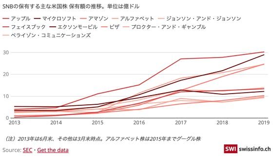 「GAFA投資進めるスイス中銀が抱えるリスク」グーグル、アップル、フェイスブック、アマゾン。「GAFA」と総称され政治さえ動かす力を持つ巨大IT企業たちに、巨額を投資する世界でもまれな中央銀行がある。スイス国立銀行(SNB)だ。SNBもその対象で、直近3月末時点で保有する米国株は2507銘柄、...