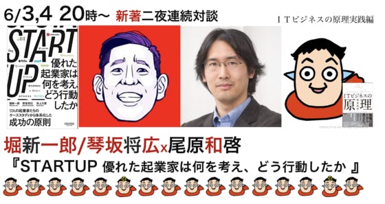 【6月第一弾予告】新著二夜連続「STARTUP 優れた起業家は何を考え、どう行動したか 」堀新一郎さん、琴坂将広さん-ITビジネスの原理実践編