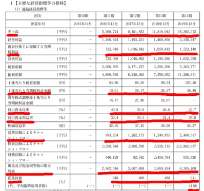 IBJの深掘りです。まずは、有価証券報告書です。・売上高:順調に推移しています(前年比129%)・純利益:2018年にちょっと足踏み・EPS:こちらも2018年にちょっと足踏み・自己資本比率:右肩下がり(でも十分)・ROE:安定的に30%超え(高収益構造)・営業CF:こちらも2018年にちょっ...