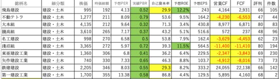 建設業⑨です。飛島建設:ROEはやや高いが、自己資本率が低いです不動テトラ:営業CFとFCFがマイナスです大本組:ROEが少し低いです錢高組:可もなく不可もなくです名工建設:営業CFとFCFがマイナスです淺沼組:ROEがやや高いが、営業CFとFCFがマイナス東亜建設工業:営業CFとFCFがマイ...