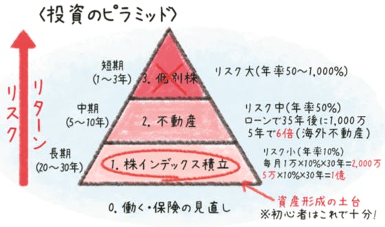 Q47.投資のピラミッドについて質問があります。❶株インデックス積立→❷海外不動産→❸個別株→❹ハイイールド債の順番で資産を形成していく趣旨だったと思うのですが、このプロセスで❸の段階ではどのような投資を心掛けた方がいいでしょうか?もしくは、熟達が難しく比較的難易度が高そうな❸の段階を抜かすこ...