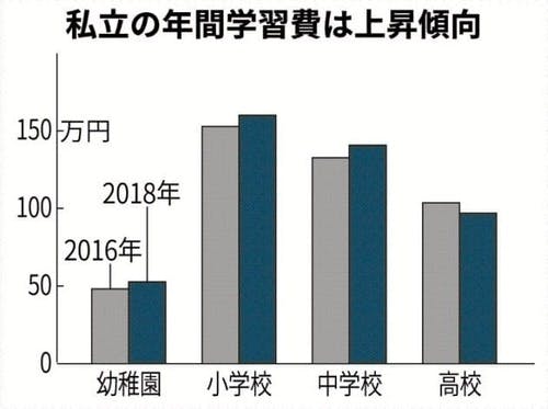「私立の学習費 過去最高に」私立の幼稚園や学校に通う子どもの学習費が増えている。文部科学省が2018年度に全国の幼稚園から高校までの子どもとその保護者2万4748人を対象に調査したところ、幼稚園から高校まで全て私立に通った場合の学習費の総額は過去最高の1830万円だった。1年間の子ども1人あた...