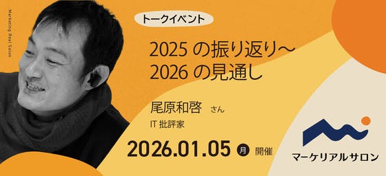 今年の年明けにも大好評だった、尾原和啓さん×山口義宏さんの対談企画を今年も開催いたします!マーケターとして知っておきたいトピックについて、2025年を振り返りつつ、2026年を予測いただく内容です。ご都合が許す方はぜひライブでご参加ください!※本イベントは、尾原和啓ITビジネスの原理実践編↓ ...