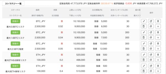 為替介入リスクは残りますが、暗号資産市場が全体的に上昇傾向です。相殺される方向で考えて、設定を変更します。裁量ポジションは一度全て閉じました。よって、レンジ相場を狙った自動売買のみで最大保有ポジションの許容をレバレッジ1.2倍程度をMAXに設定して高速で回したいと思います。あと2日で口座残高4...