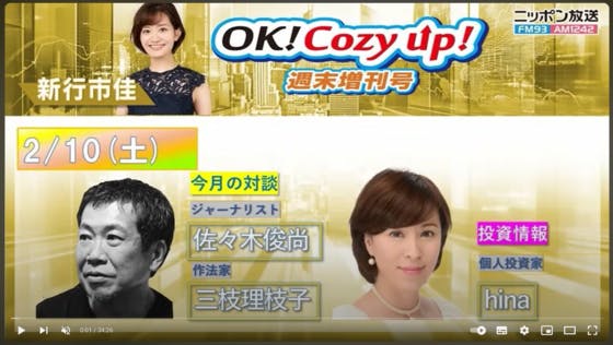 ※2024年2月10日(土曜)更新分(2月8日収録分)ニッポン放送の人気ラジオ番組【飯田浩司のOK!Cozy up!】この番組の土曜版となる【飯田浩司のOK!Cozy up!週末増刊号】の「株式投資コーナー」に毎月レギュラー出演中!podcastその他にて毎月第2土曜午後配信(同週の木曜収録)...