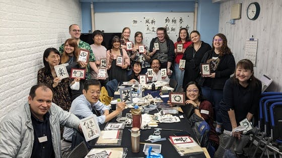 みなさんこんばんは!日本語教師のタイトです。10月は、ASAOのイベントで「伝統文化部」を行いました。岩井先生の金蘭の友、須永翠苑先生を講師に招き、書道と水墨画を教わりました!みなさんが書きたい漢字を考え集中し書く姿はとても素敵でした。 2種類の書を完成させ、終了後は2次会?打ち上げ?のため飲...
