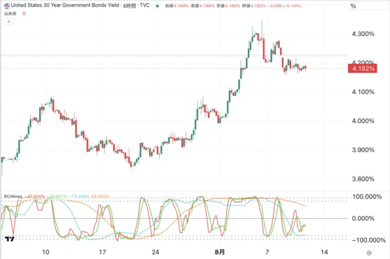 米国長期金利はここしばらく下落基調でしたが、時間足では少しずつ底堅くなってきております。しかしながらドル円は緩やかに上昇し、本日144円に一時的に乗せてきました。今の所思惑通りです。超長期金利の下落→安心感からのリスクオン構造=ドル円上昇という流れです。(※本来は逆の値動きですので、例外だと思...