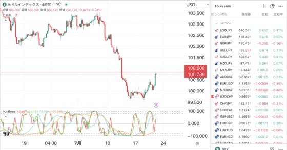 既報通り、そして本日のライブ配信通りですが、ドルインデックスが戻ってきて週足のレジスタンスラインにタッチしました。100.80-101ドルがレジスタンスゾーンです。ドル円の想定レートは140.40-45ぐらいと発信しておりましたが、140.35-140.40で推移しておりますので、もはや期待通...