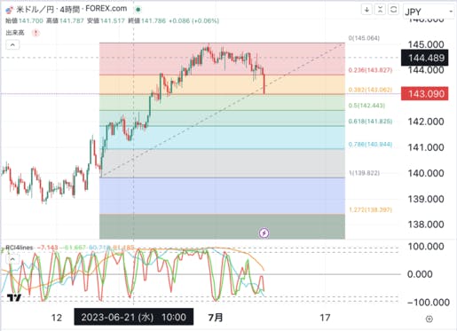 ギリギリの配信となってしまいましたが、143円近くまで下落してきました。ブルームバーグより、7月下旬の日銀でYCCに関する修正議論が流れるのではないか?とのリーク記事でした。真偽はわかりませんが、ちょうど良い押し目を作りそうです。近すぎて恐縮ですが、指値注文をおきます。【新規買い指値注文】ドル...