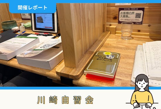 こんにちは!ファシリテーターのロッシーです(^▽^)/11月29日(土)に開催した川崎自習会の報告をします。目次1.タイムスケジュール2.勉強・作業内容3.感想参加申込みはこちら!1.タイムスケジュール今回は下記のタイムスケジュールで開催しました。07:00 カフェに集合/座席の確保/飲み物を...