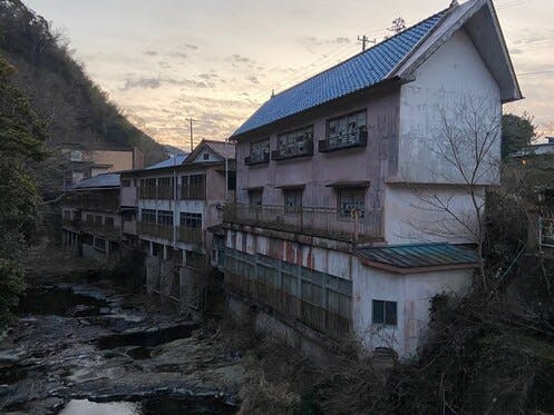 三重の山中にある榊原温泉。そして鳥羽の巨大廃ホテル。鳥羽のホテルの大浴場でおしっこがしたくなり、海をみながらジャーッとやって、ハー、すっきりした……と下を見たら、線香と盛り塩がしてあって驚きました。