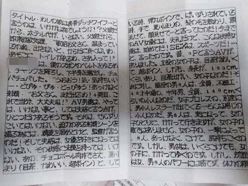 最近、ラッキーコーン先生(知らない人は検索するとすぐ出てきます)の動きが激しい。このような手紙に、過去に先生と文通した他の女からの手紙のコピーが添付されていたりする。似たもの同士が磁石のように引き寄せられるんですかね。
