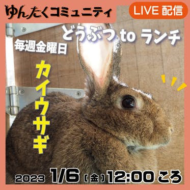 毎週金曜日12時頃から コミュニティ限定の『どうぶつtoランチ』配信中!1月6日(金)のランチは「カイウサギ」です。2023年初のライブ配信は、干支のウサギ!どの子が登場するかはお楽しみ♪今年もたくさんの動物たちの様子をお届けいたします!「どうぶつtoランチ」ライブ配信では、コミュニティメンバ...