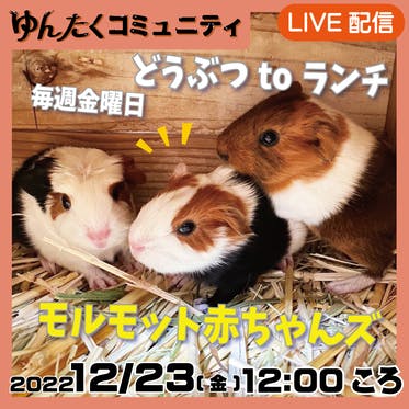 毎週金曜日12時頃から コミュニティ限定の『どうぶつtoランチ』配信中!12月23日(金)のランチは「モルモットの赤ちゃんズ」です。ふれあい広場で、久しぶりにモルモット(テンジクネズミ)の赤ちゃんが誕生しました!「どんぐり」11月22日(1頭)・「くるみ」11月24日(2頭)・「カカオ」12月...