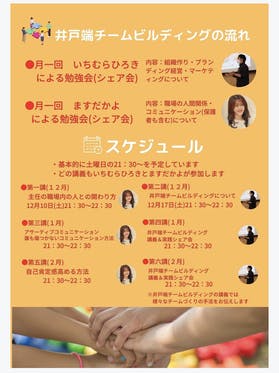 一月〜二月の講座内容です!リーダーとして大切にしたいことや、チームの作り方実践、シェア会と、楽しい内容になっています!お楽しみに♪
