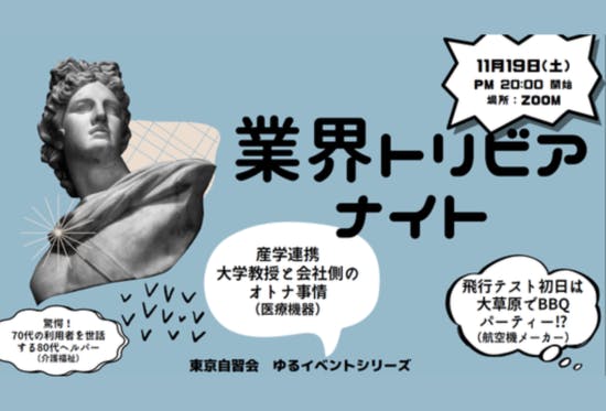 こんにちは!ファシリテーターのはむこです。秋の夜長11月19日「業界トリビアナイト」を開催しました。初回&オンラインということで、うまくいくかドキドキしながら企画練ってました。(しゅりさん、何度も相談に乗ってもらってスミマセン(;'∀'))僭越ながら開催報告させていただきますペコリ(o_ _)...