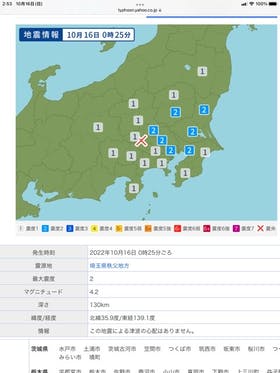 寝てる間に異常震域とはやってくれるあった、こんなところが動いたってことね?御荷鉾構造線(みかぼこうぞうせん)ジュラ紀のものが怪しい動きを見せたってことだったら厄介( ; ; )発生時刻 2022年10月16日 0時25分ごろ震源地 埼玉県秩父地方最大震度 2マグニチュード 4.2深さ 130k...