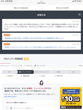 あーららプロジェクトの審査・お問い合わが現在大変混み合っており、平均5~7営業日程度のお時間をいただいております。キャンペーンへのご好評もあり、皆さまにはご不便をおかけしますが、ご理解賜りますようお願い申し上げます。とはいえ、こちらはもう一週間CAMPFIREって通すと担当をつけるから面倒だ、...