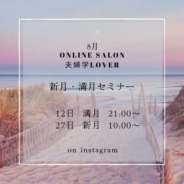 オンラインサロン夫婦学lover新月・満月セミナー今回、8月12日(金)の満月セミナーは優子と遊ぼうの会の合宿中に伊勢から生配信でお届け致します♡! 21:00ごろ配信開始の予定です! エネルギーたっぷりの配信にしたいとおもいますので、ぜひご視聴くださいませ(^^)