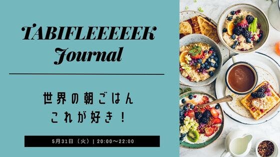 イベント報告 【TABIFLEEEEEK Journal】 「世界の朝ごはんこれが好き!」みなさまこんにちは。TABIFLEEEEEK(タビフリーク)運営のKuniです。TABIFLEEEEEKでは様々なイベントを開催しておりますが、テーマあり・事前課題もちよりイベントが沸騰中!その名も【...