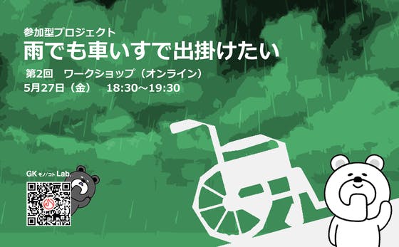 こんにちはGKモノ/コトLabです。雨でも車いすで出掛けたい 第2回オンラインワークショップ5月27日(金)18:30-19:30で行います!!どしどしご参加ください。まだまだ始まったばっかりのPJです。前回はメンバー間もまだまだ新鮮な感じでした。これからどんどん交流が深まっていくと思います!...
