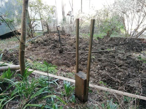 畑をつぶして東屋茶室をここに建てました。耕した土はもったいないので屋根の上にのせて屋上緑化している最中です。オフライン学習は学びがたくさんあります。夏野菜も楽しみ~