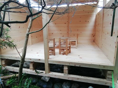 完成するとこんな感じです。日が差し込んでとてもきれいですね。やっぱり桧は美しい!一緒に作りませんか。経験者や興味ある方是非!#建築 #東屋茶室