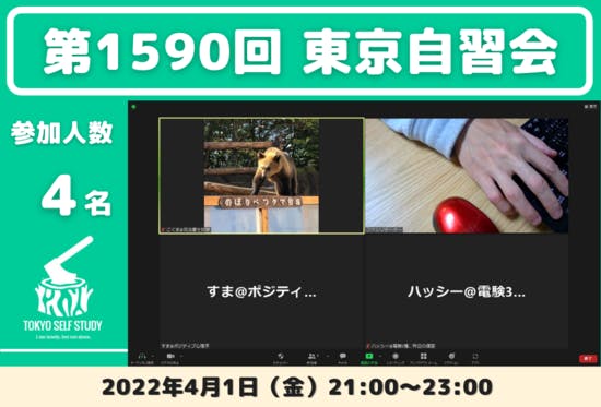 こんにちは!古岩井です(^^)ここでは東京自習会の活動履歴である『開催報告』を公開しています!参加する前にどんな方々が参加されているのか分かりますので、参加する際の参考にして下さい。【開催報告】第1590回:東京自習会(2022年4月1日)※新型コロナウィルスの影響で2020年4月からオンライ...