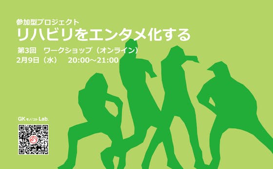 こんにちはGKモノ/コトLab.です。リハビリをエンタメ化する 第3回ワークショップ@オンラインのお知らせです!2月9日(水) 20:00-021:00@オンライン今回は20:00開催です!お間違えなく~!前回に「歩く」をテーマにエンタメ化を考えていましょうといったスタートラインに立ちました。...