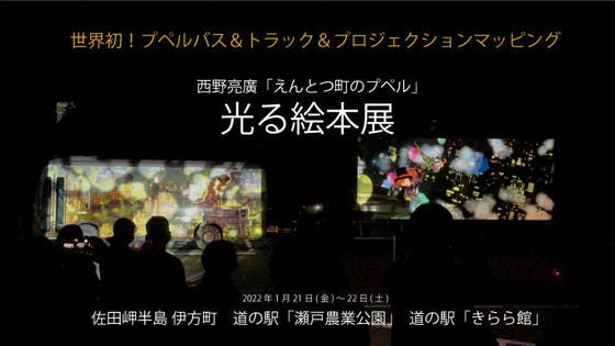 神ブラの明神です。佐田岬半島ブランディングプロジェクトでは西野亮廣の映画&絵本“えんとつ町のプペル”の「光る絵本展」プペルバスイベントの動画を作成しました。今回、亀ヶ池温泉復興支援イベントの一環で、民間で招致しましたが・・・・なんと、世界初!プペルバス&プペルトラック&プロジェクションマッピン...