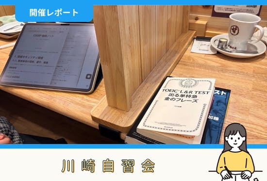 こんにちは!ファシリテーターのロッシーです(^▽^)/1月17日(土)に開催した川崎自習会の報告をします。目次1.タイムスケジュール2.勉強・作業内容3.感想参加申込みはこちら!1.タイムスケジュール今回は下記のタイムスケジュールで開催しました。07:00 カフェに集合/座席の確保/飲み物を買...