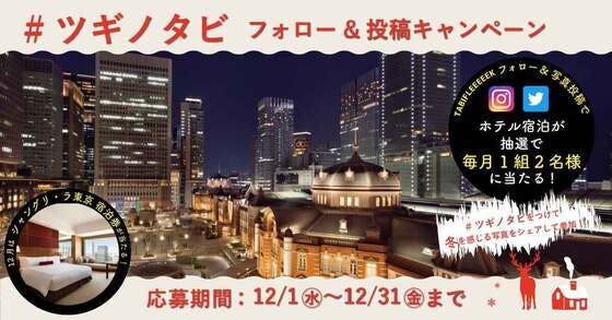 TABIFLEEEEEK Instagram&Twitterキャンペーン第三弾!概要TABIFEEEEEK公式InstagramとTwitterをフォロー&「#ツギノタビ」「#tabifleeeeek」のハッシュタグをつけて、冬を感じる旅先写真を投稿するだけで素敵なプレゼント...