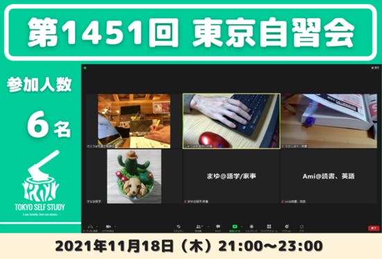 こんにちは!古岩井です(^^)ここでは東京自習会の活動履歴である『開催報告』を公開しています!参加する前にどんな方々が参加されているのか分かりますので、参加する際の参考にして下さい。【開催報告】第1451回:東京自習会(2021年11月18日)※新型コロナウィルスの影響で2020年4月からオン...
