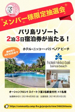 当選者発表!!今年2月にSNSにてアナウンスさせていただきました【バリ島リゾート2泊3日が当たる 「アピコミュ」オンラインメンバー様限定抽選会!の当選者を発表させていただきます!厳正なる抽選の結果、以下の通り当選されました!・ホテル ニッコー バリ ベノアビーチ 2泊3日 無料宿泊券 山口様ご...