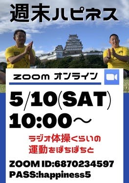 おはようございます。フィットネス芸人NORIです。緊急事態宣言の影響でなかなか実施出来なかった週末ハピネス。明日何とオンラインで実施する事が決まりました。どなたでも参加可能となっておりますのでよかったらぜひご参加下さい。30分ほどラジオ体操程度の運動をやる予定です。よろしくお願い致します。