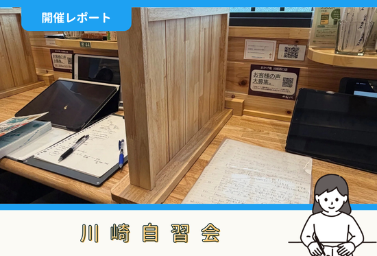 こんにちは!ファシリテーターのロッシーです(^▽^)/3月7日(土)に開催した川崎自習会の報告をします。目次1.タイムスケジュール2.勉強・作業内容3.感想参加申込みはこちら!1.タイムスケジュール今回は下記のタイムスケジュールで開催しました。07:00 カフェに集合/座席の確保/飲み物を買う...