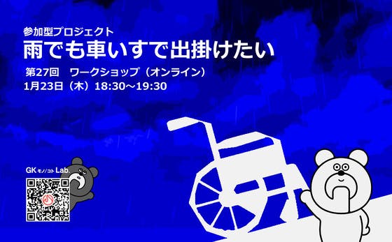 こんにちは! GKモノ/コトLabです!「雨でも車いすで出掛けたい」第27回オンラインワークショップのお知らせです。1月23日(木)18:30ー19:30です。計画していたクラウドファンディングを一旦中止にしながら、プロジェクトの進め方を議論するしました。ここにきて。。。って感じはしますが笑だ...